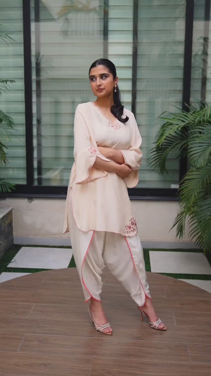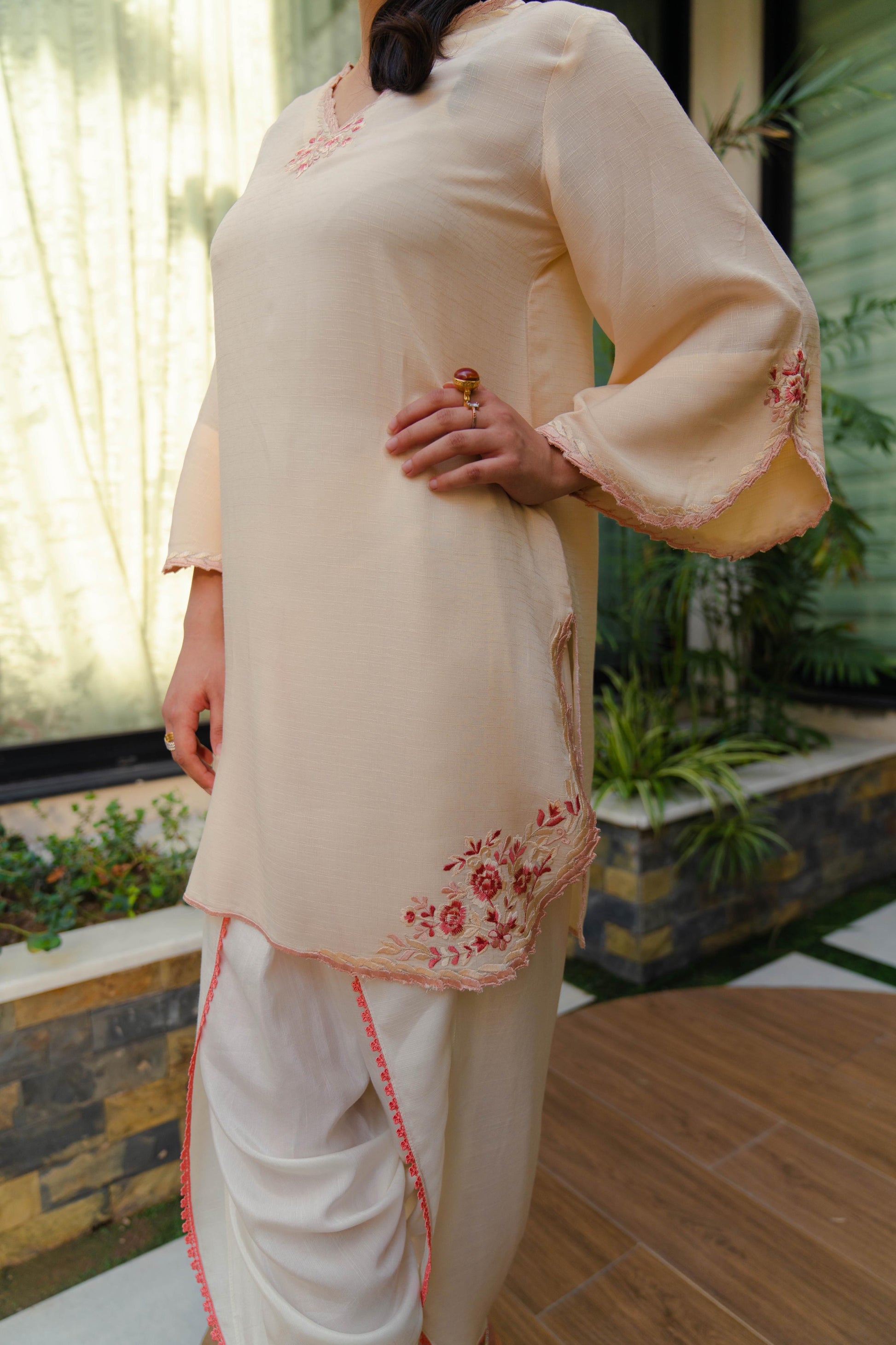 A flowy, breathable shirt with delicate thread work, paired with a tulip shalwar — made for sunny summer days.